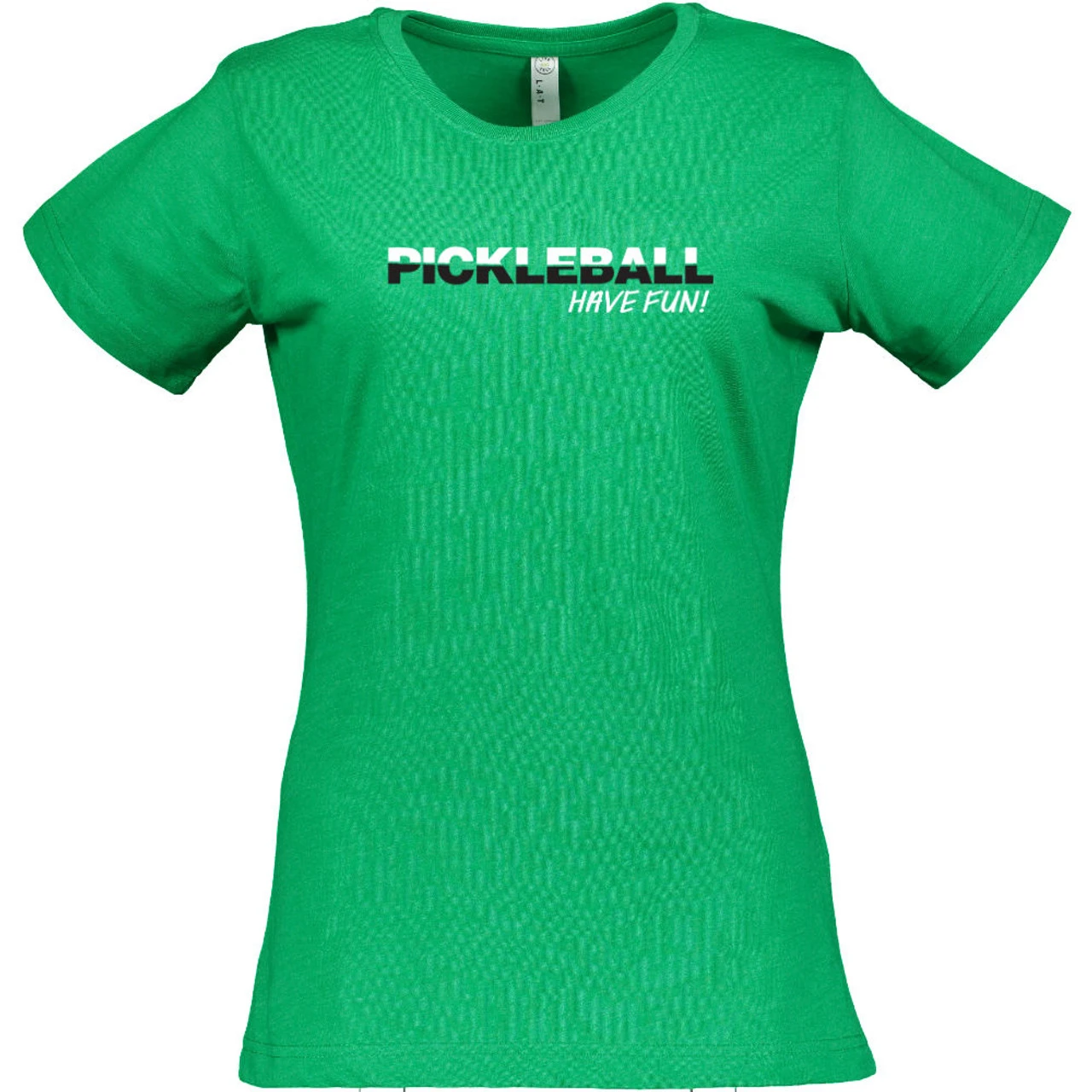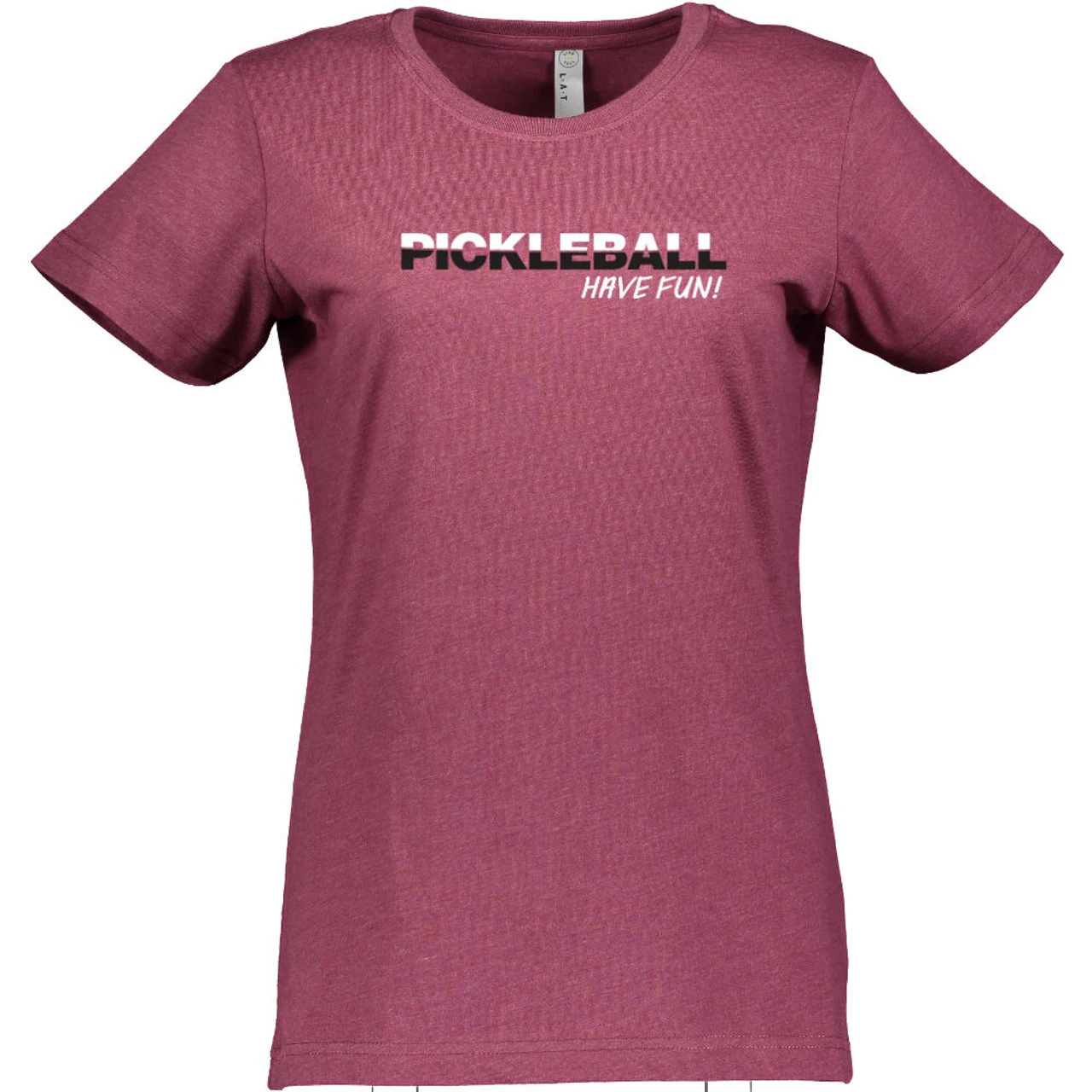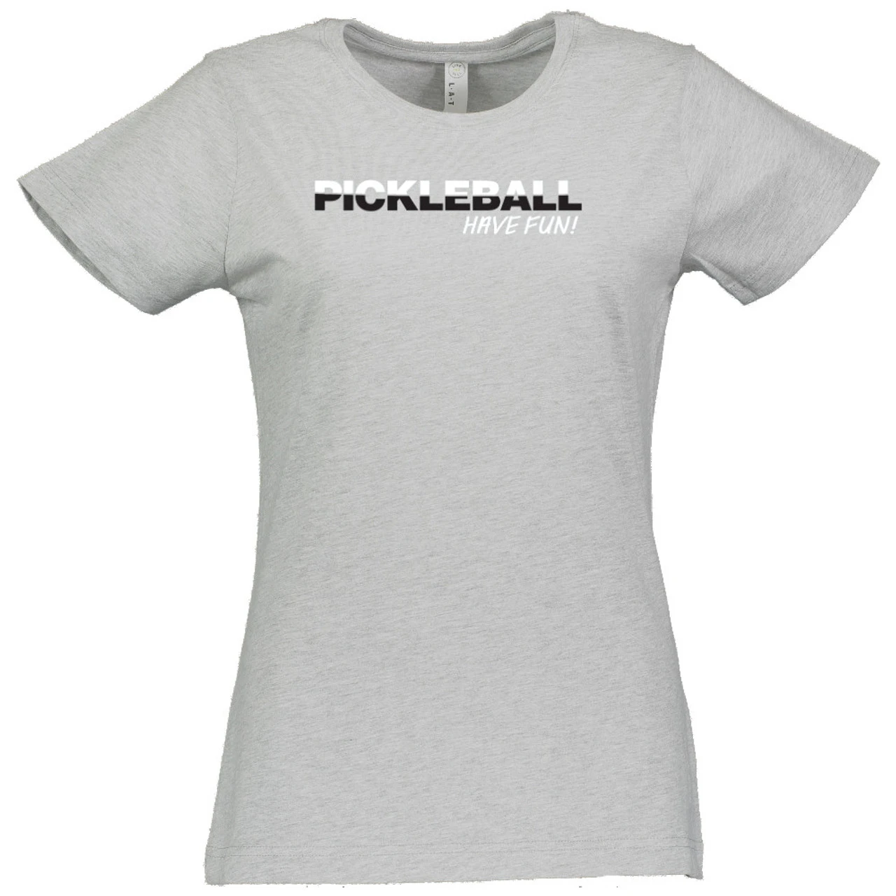 Keep your mood positive with this simple yet charming design. The word “Pickleball” is printed in black and white followed by the most important reminder we can think of: “Have fun!” Sits in the center of your shirt and measures 8 by 1-3/4 inches. The short-sleeve shirt is 4.5oz cotton/poly blend (90/10 in Vintage Heather; 60/40 in all other colors) fine jersey knit with a topstitched ribbed collar. The style is semi-fitted with double-needle sleeves and bottom hem.