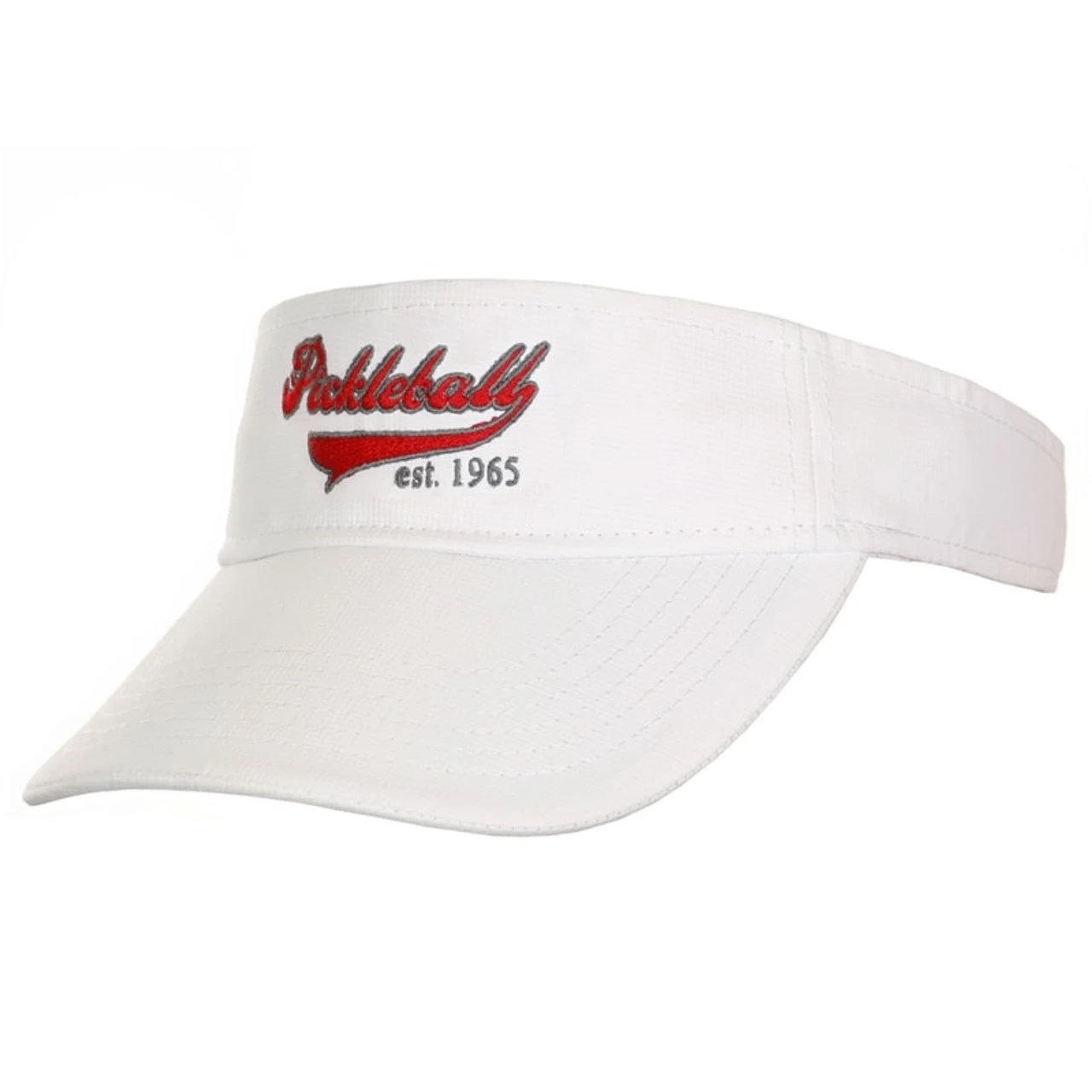 The Heritage Visor is made of light and sturdy poly fabric that will keep allow your skin to breathe, only covering the low profile brim. The adjustable Velcro closure at the back will allow you to determine the perfect fit. This visor’s attractive design is understated but elegant, with “Pickleball” written in smooth script and “est. 1965” below.