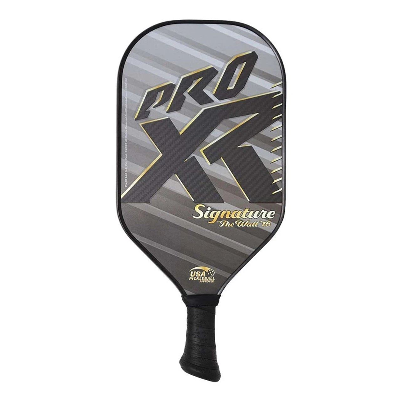 The Signature “The Wall” 16 Pickleball Paddle from ProXR is a short-handled variation of the standard Signature 16 Carbon Fiber Paddle, and will take your defensive game to a whole new level thanks to its elongated shape, massive surface area, and head-weighted design. The long paddle/short handle combo lets players use a finger or two on the back of the face for maximum stability. Combine this shape with the paddle’s 16mm (0.63″) thick poly core and patented XR-23 angled handle, and you have a potent combination of control, defensive blocking and resetting capabilities, and powerful follow-through from any depth on the court.