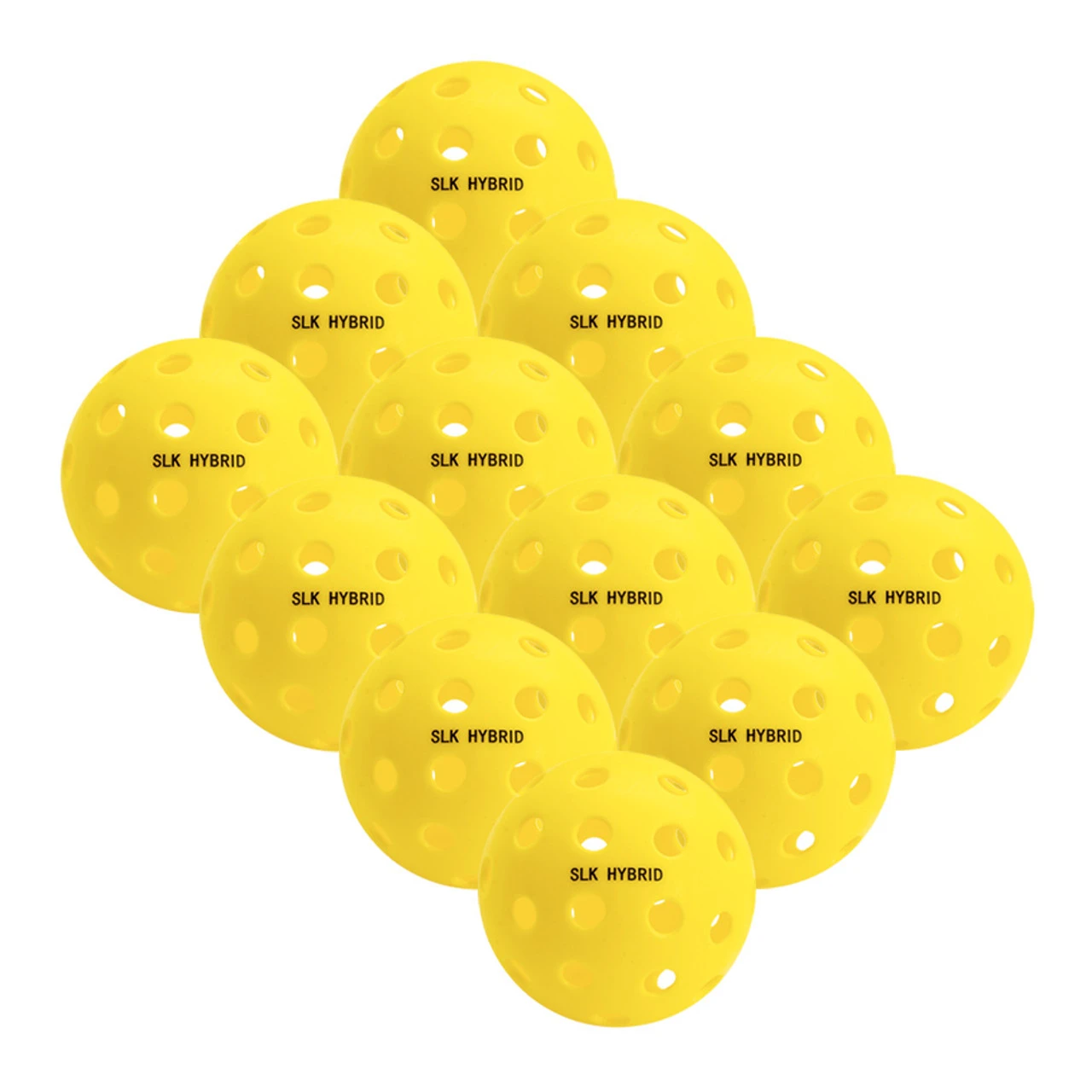 The SLK Hybrid Indoor/Outdoor Pickleball is made with 40 precisely spaced holes to create predictable flight and bounce. They allow easy passage of air through the pickleball but its weight helps to reduce interference by wind. The design has a bright yellow color that stands out for easy tracking against just about any background or court surface color.